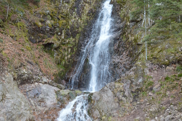 Ein 24 m hoher Wasserfall eines Vogesenbachs bei Wildenstein. Der Wasserfall im Wald ist ein tolles Wanderziel. Der Ausflug ist auch für Kinder geeignet.